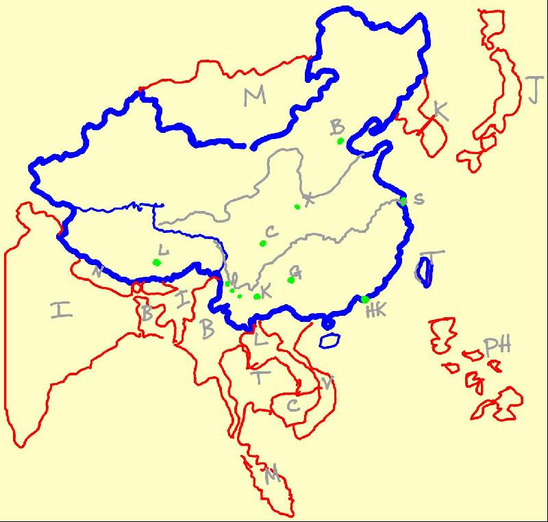 My uncle used a digital pen to trace this map depicting his itineraries in 2001 (Tibet) and 2004 (China).