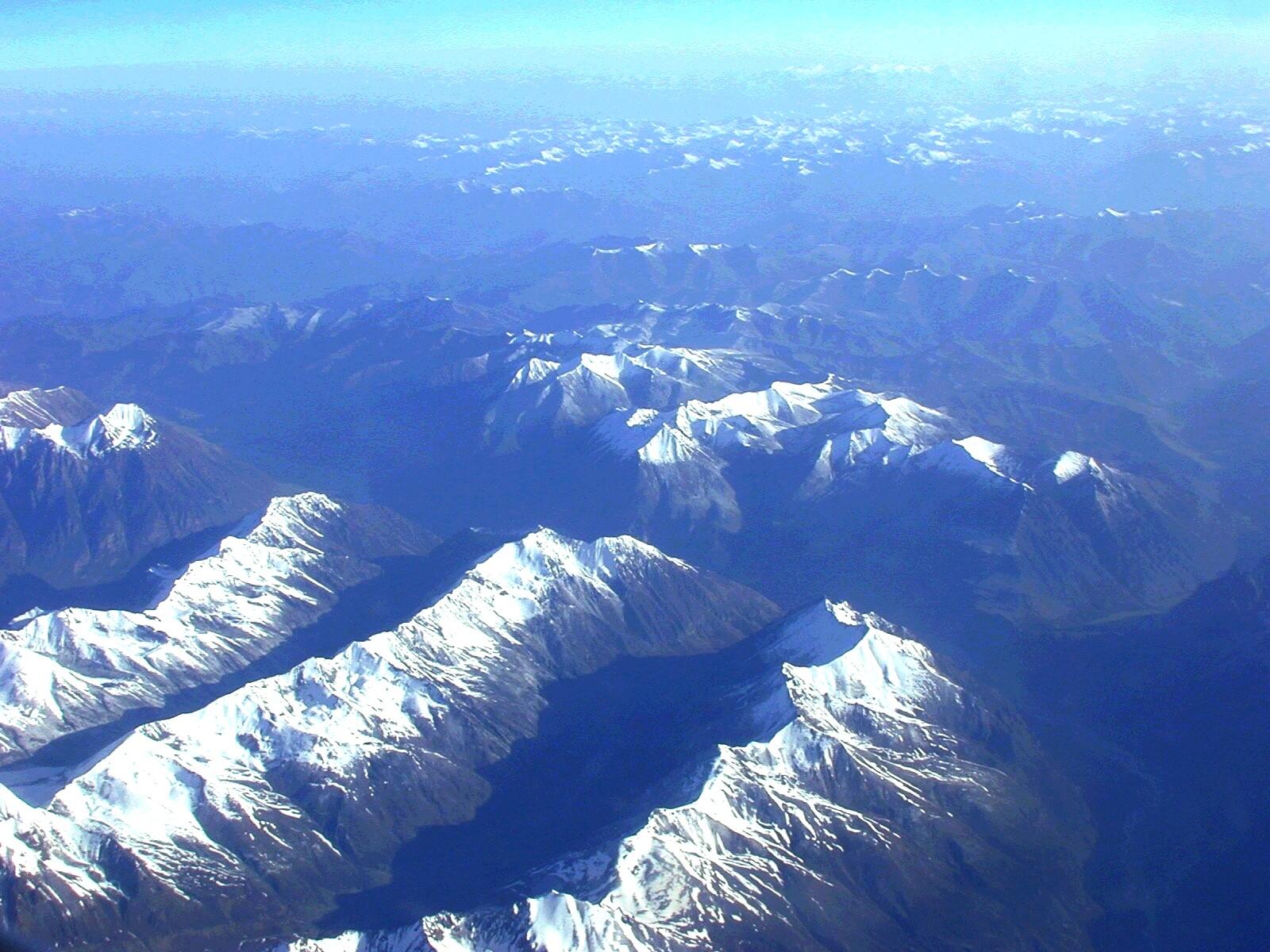 A view of the snow-capped peaks from the plane into Lhasa