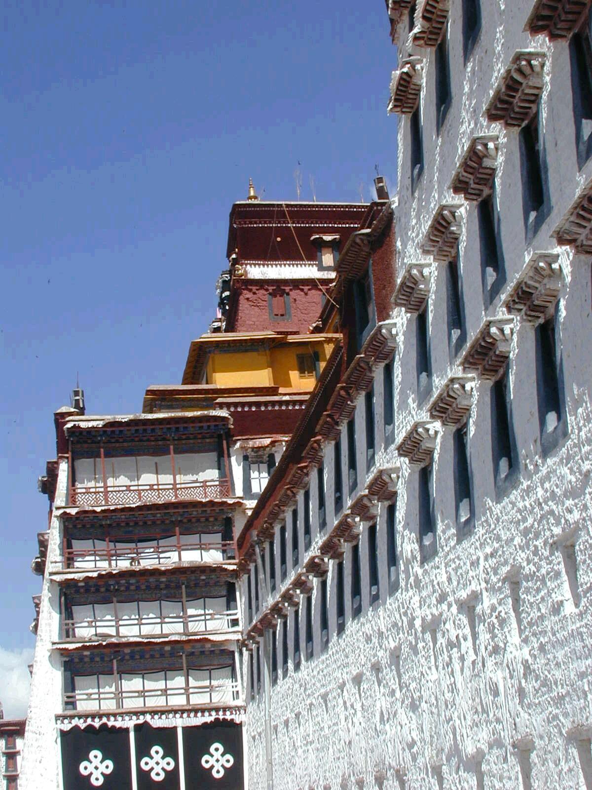 A corner of the Potala Palace, with 3 drapes made of yak hair