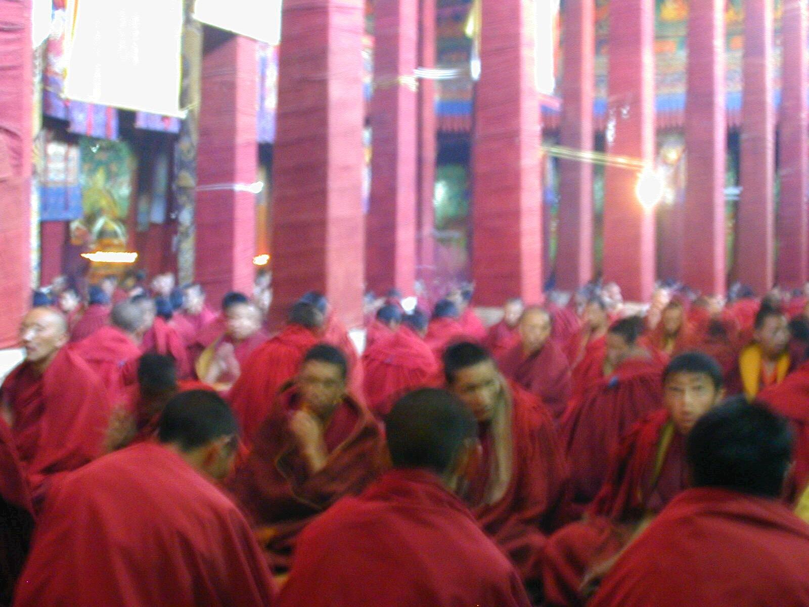 Monks at lunch in Jokhang Monastery - balls of yak butterfat are a basic part of the noonday meal