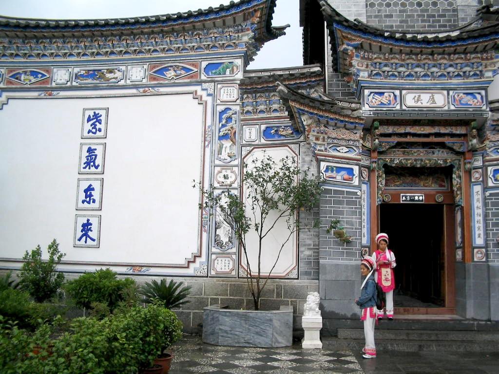 The ethnic minority Bai, "The White" (so called because of the color of their houses and traditional clothing) - the sign reads "[royal] purple from the east"